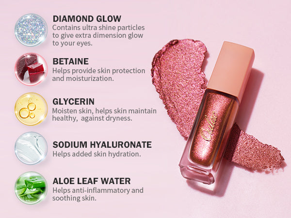Metallic peachy nude with golden shimmer liquid eyeshadow. Boasts intense, alluring metallic shine and a cool watery touch. Use as eyeshadow or highlighter.